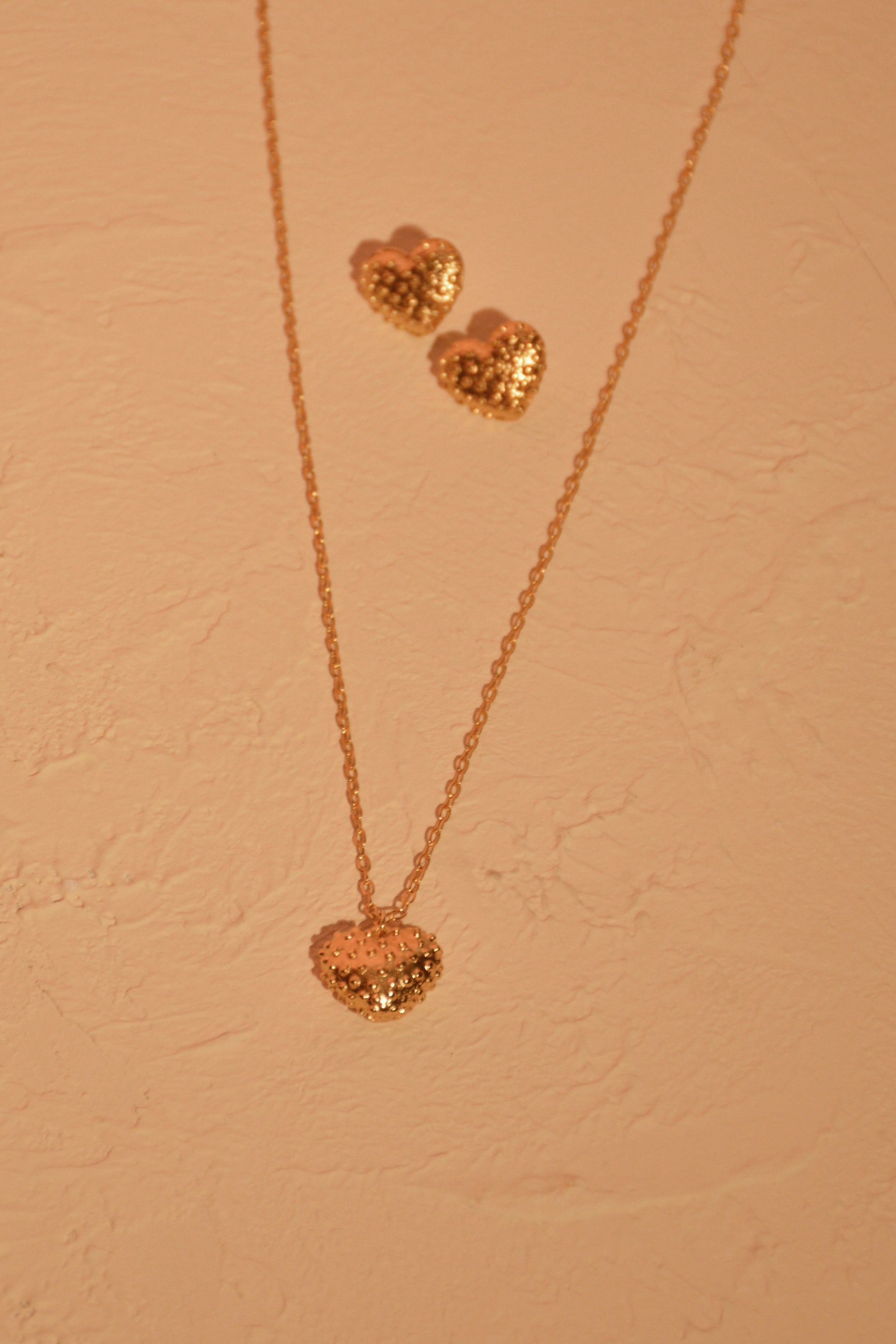 Elevate your cuteness game with the Oriana Set! This perfect pairing of a doted heart necklace and matching earrings adds a touch of charm to any outfit. 💕 (Limited stock!)